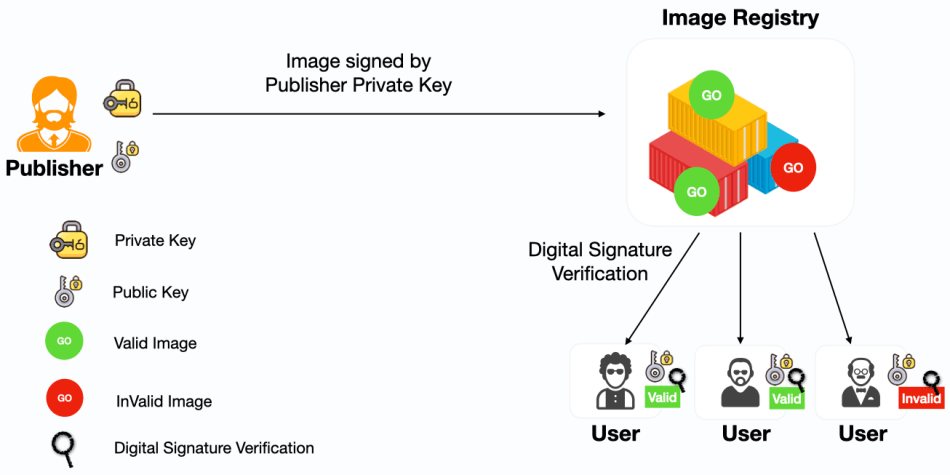 Docker engine uses the provider private key (repository key) to sign the image locally before the publisher pushes the image to the remote repository. Then when you pull this image, the docker engine will use the provider public key (root key) to validate/verify the integrity of the image before running on our system. Below are the high level and detailed steps to implement the docker content trust.