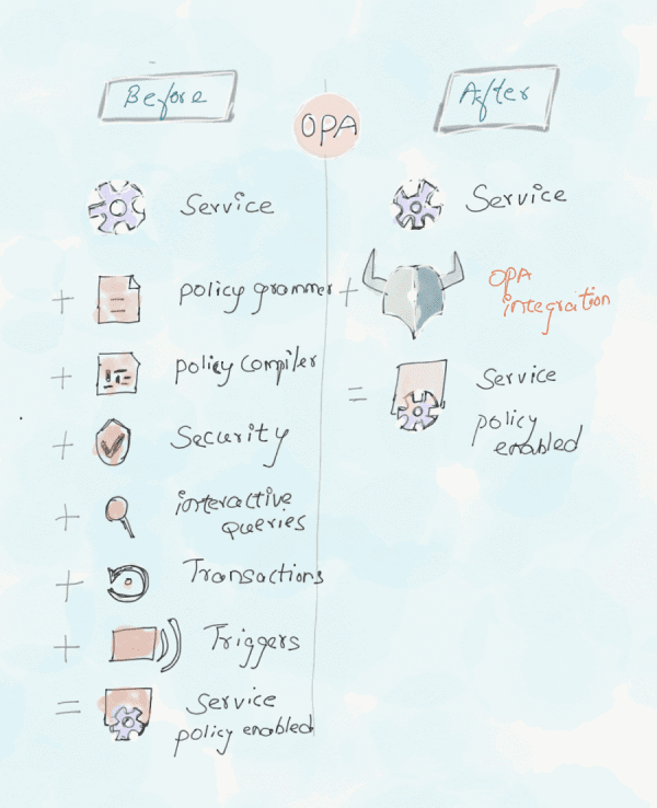 In layman terms, You can implement OPA in any layer of the stack in the system and it will help you to offload the policy decision from your service. So you are decoupling the policy decision from the enforcement piece. It further allows declaratively specified policies to change based on business needs, update without recompilation or redeployment, and more importantly reduce the risk of human error.