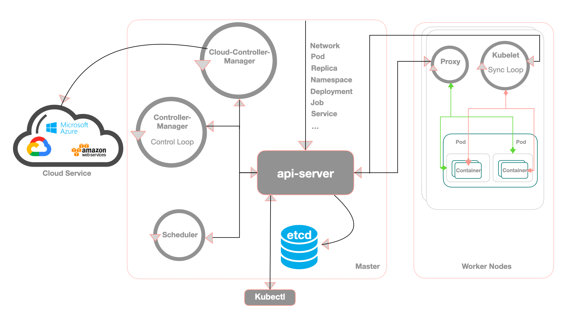 Kubernetes has been widely used in the container field in recent years as a typical solution for containerized deployment and implementation. Please refer to the official website for more details. In Managed Kubernetes service (GKE, AKS, EKS) Master node is managed by the service provider, Worker node is managed by users. But in open source, both Master and Worker nodes are managed by the user.