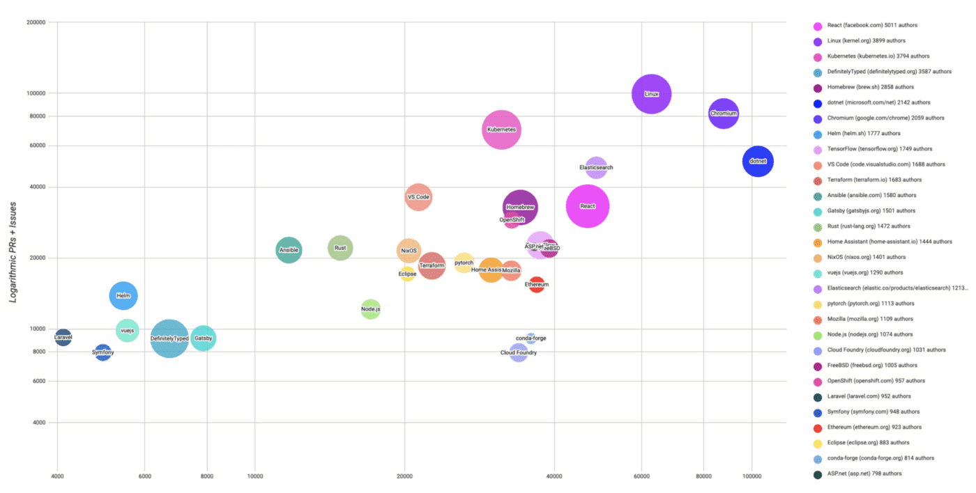 The below infographic (bubble chart) will show the top 30 highest velocity open source projects as of June 2019 and Kubernetes hold 3rd position in the list.