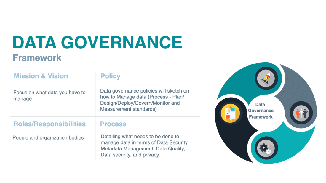 Data Governance is a framework that you can use to proactively manage organization data and define how the data can be accessed with a set of processes, roles, policies, and standards.
